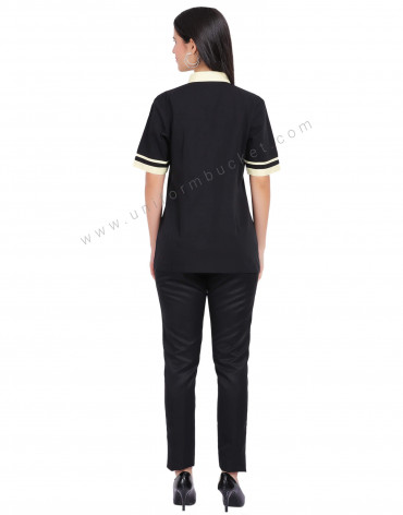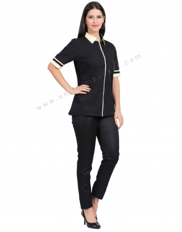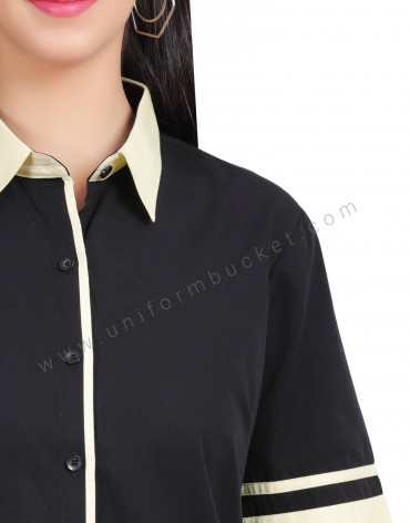 This blend of polyester-cotton fabric is comfortable to wear due to the added stretch and breathable cotton yarns. Finished with a shirt this style is ready to go. Uniform Bucket Range of female corporate Shirts are made up of fine quality fabric and export quality stitching that will give you a Smart look with comfort while at the office. Club it with contrast trousers to give it a perfect look.