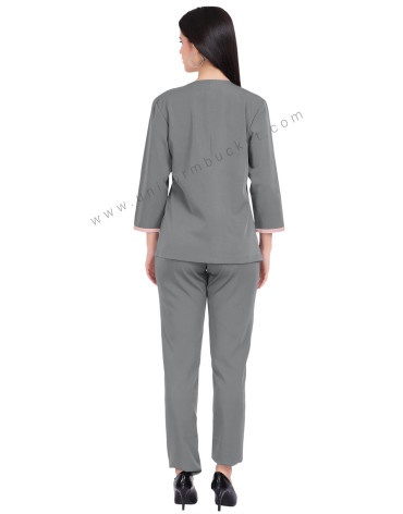 GREY DESIGNER TUNIC WITH PINK PIPING